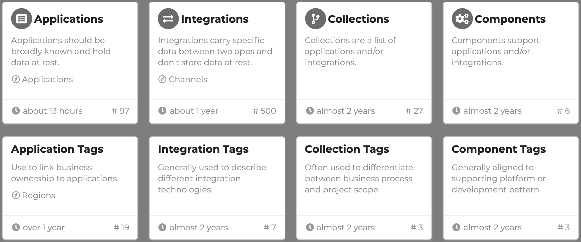 - Integration Tag: Generally used to describe different integration technologies (e.g. API, MFT, ESB). It is possible to apply multiple tags to an integration.
