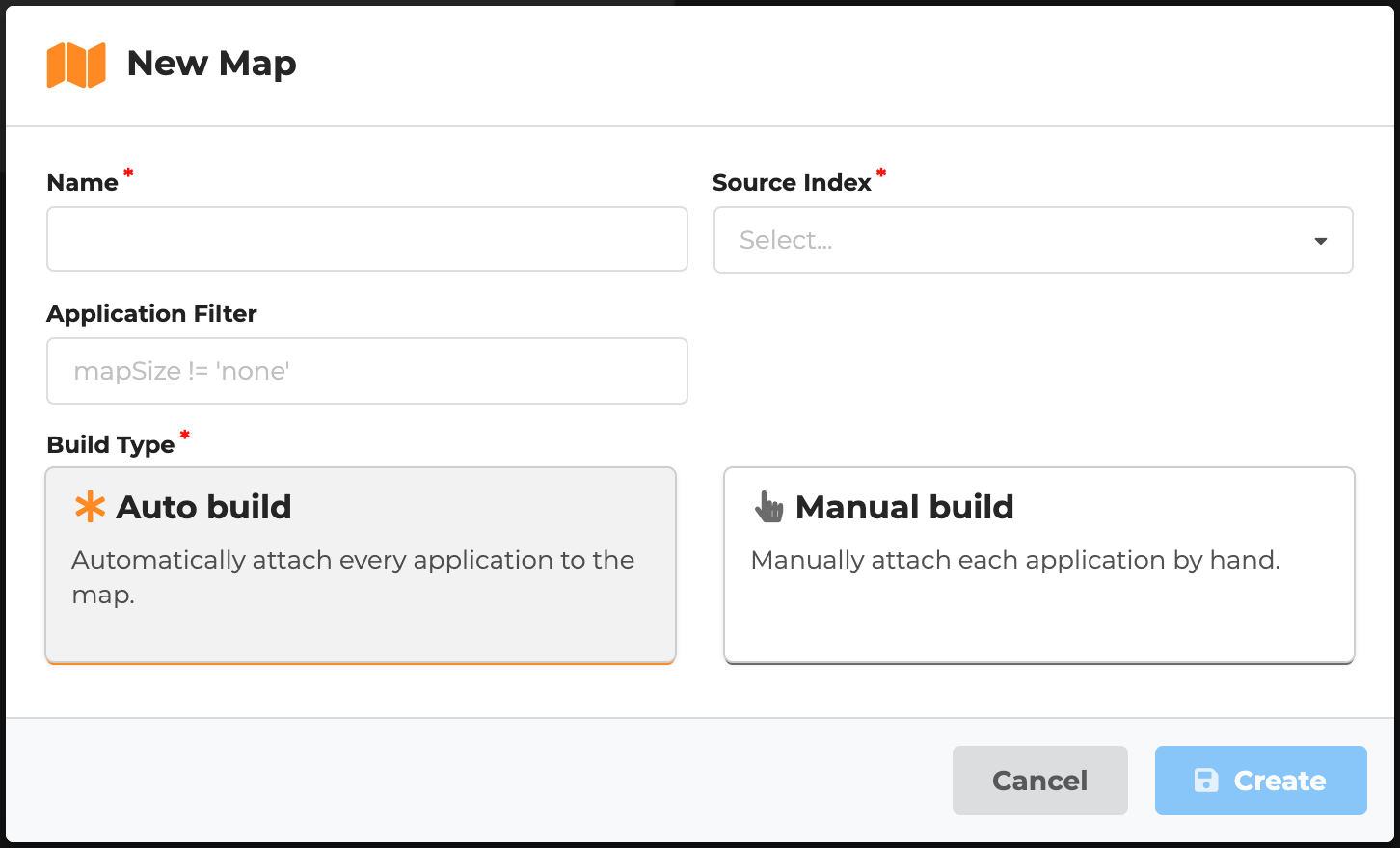 - Optionally, specify an application filter to limit what applications can be placed on the map (see below for more information.